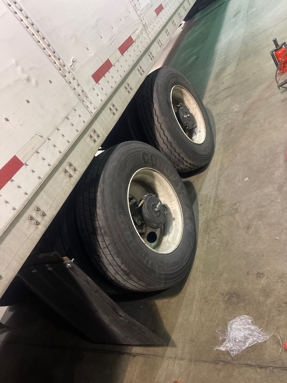 I replaced the one blown out tire and the brake shoe that failed, straighten the mudflap bracket, put a new mudflap on it then I replaced the right front inner tire because it was also coming apart